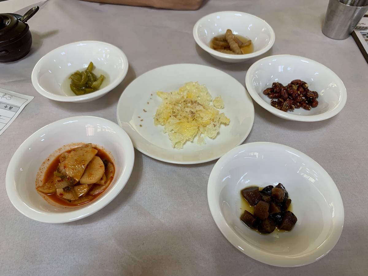 - Banchan. Son un montón de platitos con pequeñas cantidades de comida que por lo general acompañan al plato fuerte. Es común que cuando se acabe esa comida, vuelvan a llenar el platito.