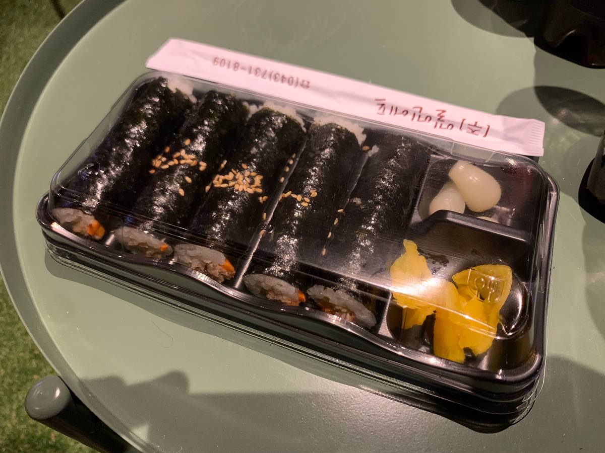 - Gimbap. Es muy tradicional, es arroz envuelto en alga, con vegetales y puede tener alguna carne (parece sushi). Muy rico, lo venden en todo lado. Sabe mejor fresco, pero los que venden ya preparados también saben bien.