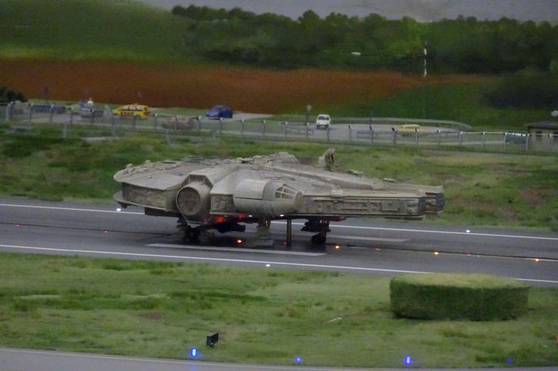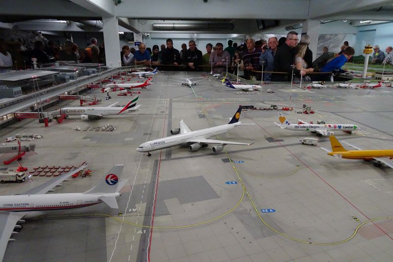 El aeropuerto es quizá la parte más impresionante de todo el recorrido, al menos desde el punto de vista técnico. Son 150 metros cuadrados de construcción, que tardó 6 años en completarse. Cuenta con alrededor de 50 aviones diferentes, con todos los movimientos sincronizados para dar una sensación de estar en un aeropuerto real.