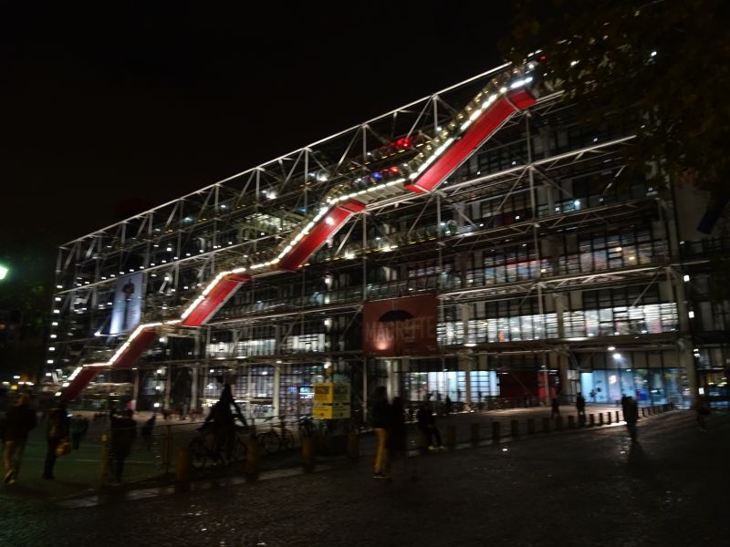 A 700 metros hacia el este, se encuentra Centro Nacional de Arte y Cultura Georges Pompidou. En este lugar se encuentra un centro de investigación musical. la Biblioteca Pública y principalmente el Museo Nacional de Arte Moderno, uno de los más completos del mundo. El edificio en sí tiene un diseño cuadrado e industrializado, que aún hoy genera polémica en cuanto a su diseño con respecto a su entorno.