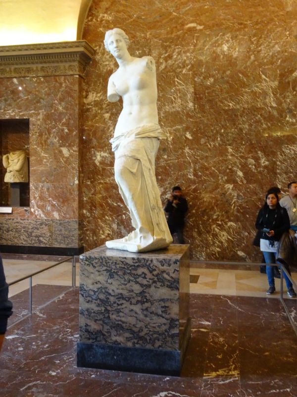 - Venus de Milo. Escultura en mármol blanco de tamaño un poco más grande que el normal. Quizá una de las esculturas más reconocidas de la antigua Grecia. Dado que esta escultura no tiene brazos se ha dificultado su identificación. Es por esto que la teoría más aceptada es que represente a Afrodita, diosa griega de la belleza y del amor.
