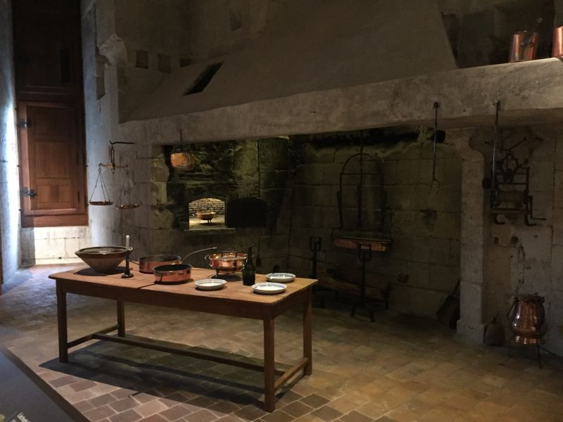 Lo primero que se puede observar en la escalara de doble hélice, vale la pena invertir un tiempo en apreciar su diseño. En el primer piso se pueden visitar varias habitaciones, así como la cocina del castillo.