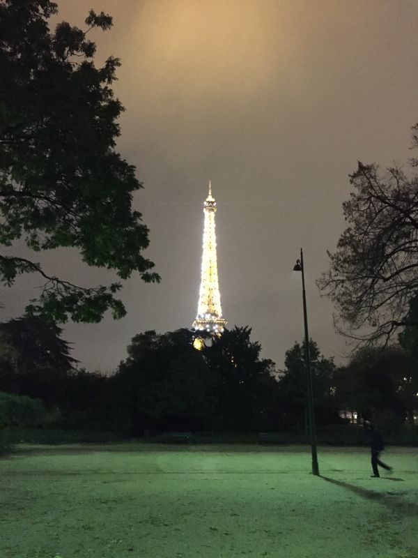 Luego de descansar un poco, nos fuimos caminando hacia la torre. Eran 2km, entonces nos sirvió para admirar la ciudad de las luces, ya que mientas caminábamos iba obscureciendo. Llegamos a la gran plaza Campo de Marte. Sin embargo, no pudimos verla en su esplendor porque estaba en mantenimiento.